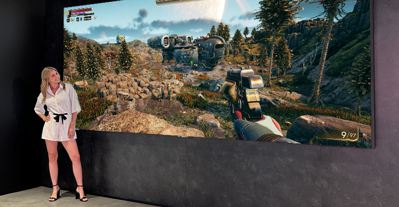 A video wall orchestrates an immersive viewing ambiance, transporting viewers into the heart of their favorite movies, TV shows, or video games.